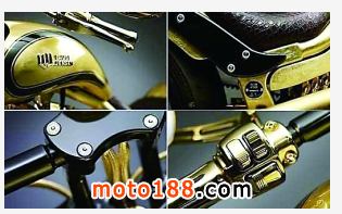 據英國媒體日前報道,據了解,該款摩托車由丹麥著名的摩托制造公司Lauge Jensen打造。特別是整車24K鍍金的設計,令人大開眼界。該款摩托車由一輛時速可達250km/h的哈雷摩托改裝而成。另外,268顆鉆石的鑲嵌也令該摩托車身價倍增。另外,先前世界最貴的摩托車為道奇戰斧V10超級摩托車,其價格達到60萬美元(約合人民幣365.5萬元)。