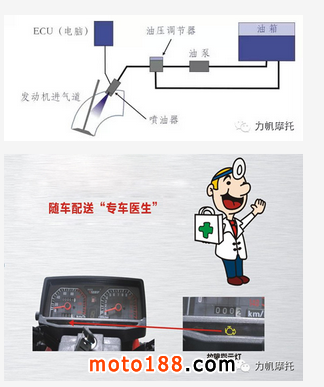 因此,電噴技術的推廣使用既符合全球環境保護、國家節能減排的社會大趨勢,對于用戶來講,電噴摩托的實用性更廣,使用范圍更廣,通過燃油控制系統,整個發動機安全性更高、更穩定。雖然在購車成本上稍有增加,但使用中油耗將減少25%-30%,以用戶每年行駛1萬公里計算,每年大約可以節省500元燃油費,一兩年內便可以收回增加的成本。