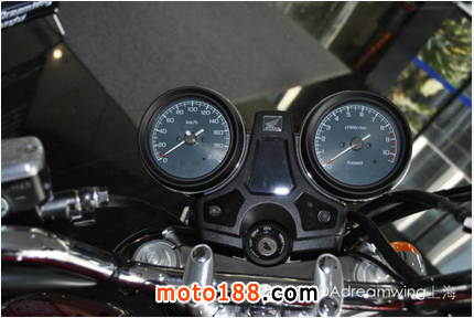 隨著很多經典車型都紛紛改用中置減震,CB1100還是我行我素。該車仍然采用了前后四減震的組合,這樣的組合,對路面沖擊力的吸收更加有效。同時,該車還 采用了前296mm、后256mm的大口徑碟剎,另外,還可以選配ABS功能。而儀表的選取上,CB1100煥發出了一些新意。雖然依舊采用了雙表的經典 造型,但是,其中鑲嵌的液晶屏幕,可以顯示時間、油量等數據,變得更為簡潔便利。