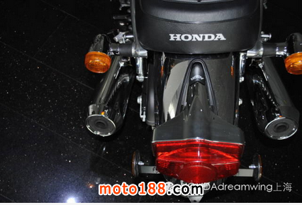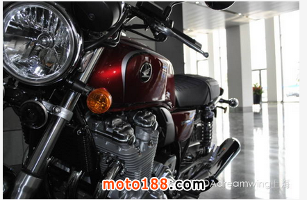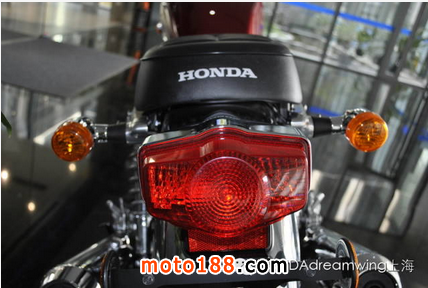 從外觀來看,CB1100仍然采用了CB系列經典的復古造型。流暢而簡潔的外觀設計,依舊讓人賞心悅目。紅黑灰三色的組合也沿襲了CB400的風格。包括圓 燈圓表、消音器、油箱的造型,如果不仔細看,你都會誤以為這就是CB400。然而,碩大厚重的發動機總成以及大口徑的前后碟剎,都會準確無誤的提醒你,這 是一匹難以駕馭的怪獸。