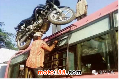 沒有任何的支撐,就這樣用頭頂著,雙手扶著階梯慢慢的上去,大家都知道摩托車的重量,不服的騎士可以自己試驗(yàn)!