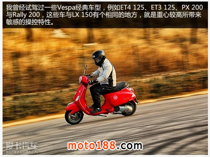核心提示: 若你曾經(jīng)騎過需要換擋的Vespa,肯定會對它的操控有很深的印象!事實(shí)上,LX 150的操控表現(xiàn)比起以往二沖程的Vespa可說是親切許