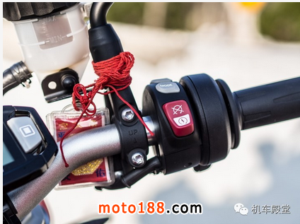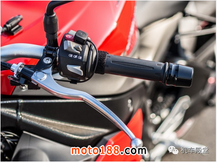 位于右邊的油門把手更選配了南天宮的行車平安護身符(要擲圣杯才能選配),加溫把手開關*(真是貼心)、動力輸出模式開關(可選擇雨天及公路和賽道模式三種,選配DTC套件更會增加隱藏的PRO RIDING MODE)、整合式電門開關(包含引擎斷電及啟動鈕),比較可惜的是原廠直推總泵不是採用與分泵相同的Brembo,就當成是替車主保留改裝樂趣吧?
