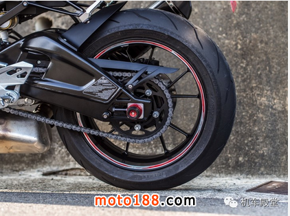 單看這后搖臂你應該認不出這臺S1000是1個R或2個R吧?不過也許是因為街道化的原因,后懸吊的行程由RR的130mm縮短到120mm。