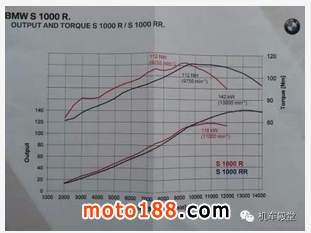 (由這張圖表看的出S1000R在9,500rpm前的輸出甚至是超越S1000RR的)