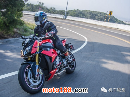 而今天實際下去試騎了一趟,最大的感觸應該是極輕量化的四缸引擎大幅的降低了過去騎乘四缸車過彎時很難克服的"延遲感受",用口語一點的說法就是在過彎時會覺得跨下有東西在影響你的重心,當你要傾倒之前必需要先去"壓倒"那卡在你與車中間的重心點后車子才會開始傾倒。V缸車由于重心較低與集中所以不會有這種反應,而S1000R則是很輕微,幾乎不會有什麼阻礙感存在,也許實際過彎時沒有像V缸車那樣的直接與迅速,但身為一輛4缸公升級街跑,這樣的表現也真的是可圈可點。