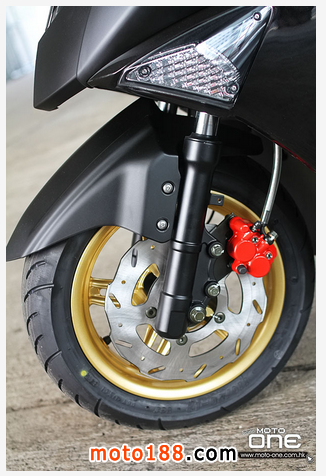 ●啞黑車身、金鈴與少許紅色拉花的座椅,配色鮮明。