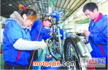 南鷹公司在搬進新工廠的時候,新增兩條生產線,都按照生產摩托車的標準裝配。。目前公司自動化程度達到50%。以前一條線需要70-80人,現在只需要30人左右。”據易文俊介紹,公司將一些制造環節外包,主要精力放在技術研發和提升效率方面。