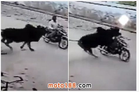 男子騎摩托車被發狂公牛躥出撞倒