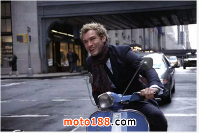 在2004年被翻拍的電影《Alfie》里,Jude Law所飾演的花花公子Alfie則重新刻畫出了一個現代版MOD的形象——實質上,稱之Dandy或許更為恰當。但可惜,真正意義上的Dandy絕沒可 能趕上VESPA的年代——男主人公Alfie信奉“衣著是一種國際通用的語言”。因此他衣著考究,穿一套Tom Ford時期的Gucci西裝,粉紅色襯衫及Prada皮鞋;噴香水時,甚至也不忘給“下臥鋪”的兄弟來上點兒,足見情趣。但這是個落魄的花花公子,以開 豪華房車為生。在平時,他的交通工具是一部藍白相間的VESPA,載著他,和他各個女朋友,徜徉在曼哈頓的大街小巷。