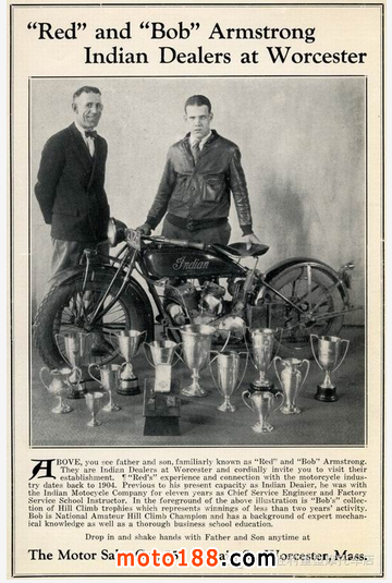 Bob Armstrong是一位天才型車手,在很小年紀(jì)的時(shí)候就體現(xiàn)出對(duì)摩托車的強(qiáng)大駕馭能力,19歲時(shí)贏得了全國(guó)業(yè)余hillclimb冠軍后勵(lì)志成為專業(yè)車手。1930年賽季開始后,Bob Armstrong贏得了文索基特比賽與羅得島比賽兩項(xiàng)HillClimb冠軍。不幸的是在剛剛開始的第一年職業(yè)比賽生涯后,21歲時(shí)Bob Armstrong因劃船溺水意外離世。