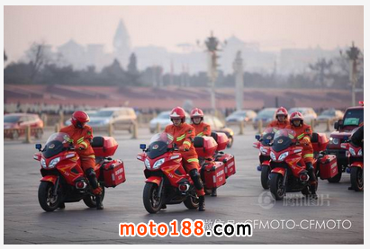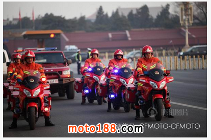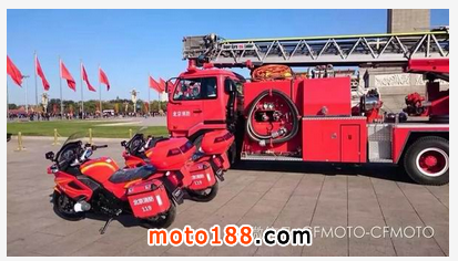 據北京市消防局消息,兩會期間,消防部門換裝了新型消防執勤摩托車,此款摩托正是春風公司自主研發生產的春風650J,配備有小型滅火器和破拆工具,具有靈活機動、處置快速的特點。