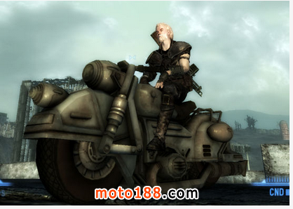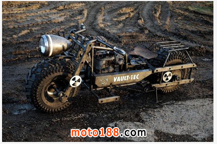 該款車由電腦游戲 Fallout 3 演變而來,號稱世界末日之戰車!一位名叫 Chris Riffel 的高中生某天突發奇想,從上述游戲中獲得靈感,在其朋友和老師們的協助下最終完成了 Fallout 3 現實版的摩托車的設計和制造。制造和組裝過程完全 DIY,自己動手切割和焊接鋼架,發動機則由報廢件改造而成。