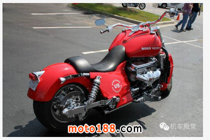 BOSSHOSS 是由美國肯塔基的經(jīng)銷商開發(fā),在2006年推出的一款客戶定制車,價(jià)格169000美金。使用道奇VIPER V10發(fā)動(dòng)機(jī),以前道奇有一款4輪的摩托車戰(zhàn)斧用的就是這個(gè)引擎。安裝在BOSSHOSS新開發(fā)的摩托車上后有4個(gè)檔位,功率580P,630牛/米扭矩。美國國內(nèi)和海外市場(chǎng)只能通過預(yù)定購買,需要繳納50%定金,然后等待一個(gè)月。