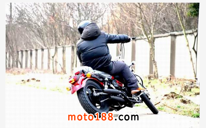 太子車的重心通常是偏前的,車手居然也做出翹頭動作!表明域火配置的這款并列雙缸250cc引擎,其爆發力還是不錯的。