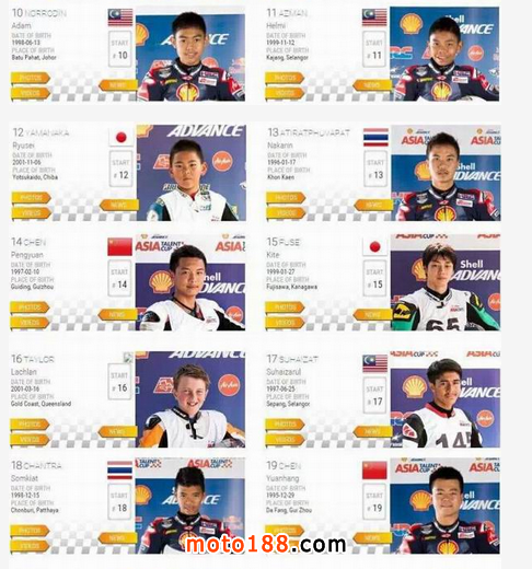 駕駛19號賽車的陳遠航在測試中做出2:19.327的最快圈速,相對去年稍有進步。第一次駕駛Moto3的14號陳鵬遠從第一天的單圈2:30秒開始逐漸提升,到第三天做出2:22.411的最快圈速,在接下來的比賽里進一步熟悉適應這個比賽和賽車后,相信還能取得更大的進步。