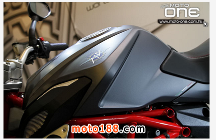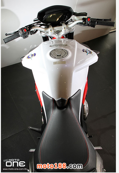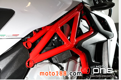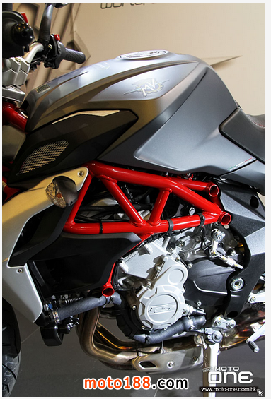 其次,2015 MV Agusta BRUTALE 800 ABS 深灰與白色閃粉底的新色抵港(紅色快將抵港),三色的車身鋼管車架均改用搶眼的紅色,并新增了油缸與座位間一片保護(hù)膠。至於車身設(shè)計(jì)、引擎及裝備均與2014款相同。