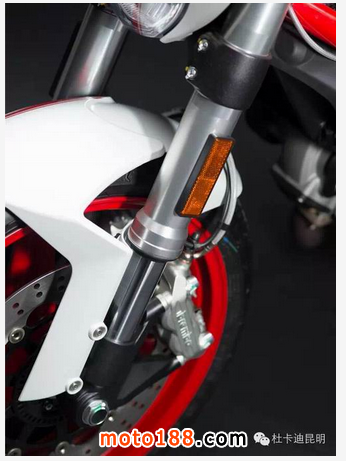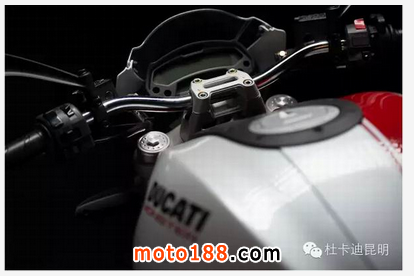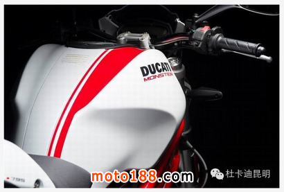 現在 ,Monster795 家族又有了新成員:Red Stripe紅條版(限量發售)。在車身整體配色方面,設計師采用了大膽的配色風格,白色車身飾以獨特的杜卡迪紅白相間條紋,前后紅色輪轂更增加了視覺沖擊力,也進一步彰顯了其強烈運動風格!它的上市為國內的怪獸車迷提供了新的選擇。
