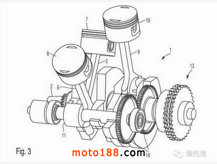 核心提示: BMW正在申請設計風冷W型三缸引擎的兩種專利,也曾經有一些制造者為了獲得比V型雙缸更有力的引擎而制造了W型三缸引擎(例如191