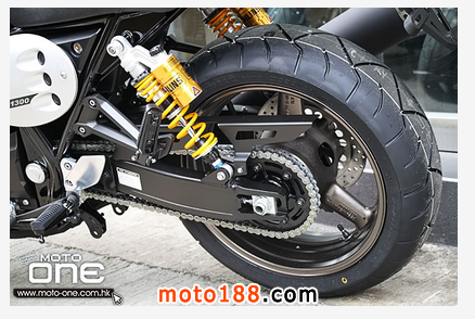 以1,300c.c.級別車子只配14.5公升油箱,聽下去不太合比例,就連一部 400c.c.級的油箱容量也不止此數,但新設計的油缸目的是讓車子看來更瀟灑之餘,更有效提高車子的靈活性,不失跑車的身份。她的旁冚正好是一塊不折不 扣的號碼牌,加上全新設計啞黑4出2出1排氣喉,還有那貌似單座位的設計,令她更是入形入格。請勿忽視那古典形燈翼啊?