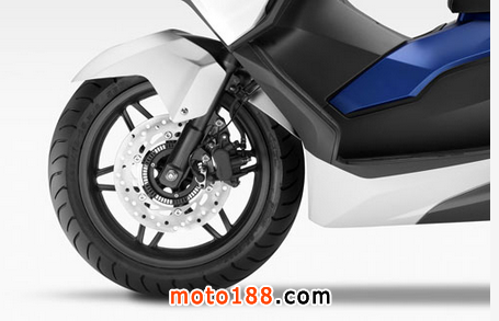 下圖:采用了 ABS 制動(dòng)系統(tǒng)的歐版 Honda Forza 125