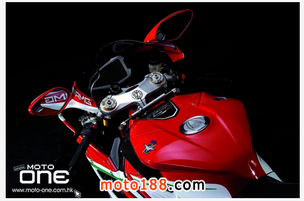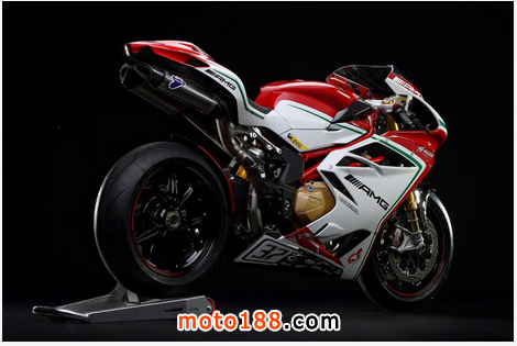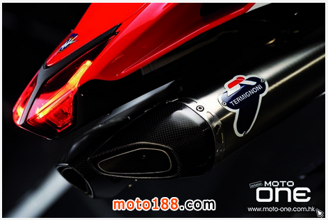 F4系列,包括F4、F4 R及F4 RR屬M(fèi)V AGUSTA的旗艦SUPERBIKE,早陣子已傳出廠方將會(huì)加推新成員,并有可能成為最大馬力的市販SUPERBIKE。最近,廠方終于公佈新車規(guī)格及 圖片,新車型號(hào)是F4 RC,原裝車馬力高達(dá)205hp(207.9ps),只要更換隨車附設(shè)的TERMIGNONI排氣管后,馬力便提升至212hp(215ps),而車輛干 重只有175kg,濕重是183kg,其重量/馬力的比例明顯較F4 RR更優(yōu)勝,再者F4 RC只限量250臺(tái),因此十分珍貴。