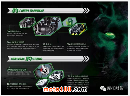 其他諸名150cc CBF渦燃發(fā)動機(jī)、8種顏色及鼓剎碟剎多種配置、價格等,筆者在此不作特別描述,還是附上企業(yè)的宣傳資料更清晰。