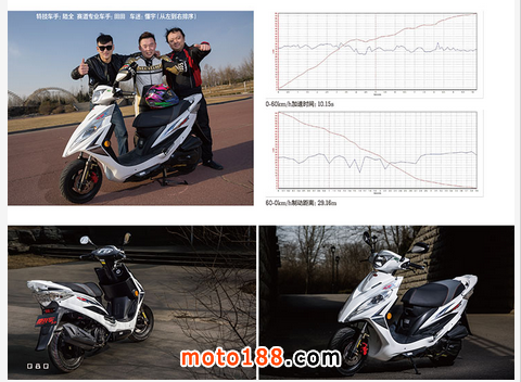 起步時,勁麗電噴的表現讓車手有種喜出望外的感覺,油門一動車身立馬一躥,稍稍給點油就能迅速駛離原地。此后,絲絲入扣的油門響應會一直延續到60km/h之后,在低中轉速區間,抬起前輪絕對小菜一碟。顯然,這款小車的前段扭矩是可以用“強悍”來形容的,加速性能不次于市面上的125mL級踏板車型。在轉速超過7000r/min之后,,提速逐漸趨緩,但表盤上的時速顯示早已過了80km/h,實際上,這款電噴發動機可以很輕松地將速度超越90km/h,在高速性能上也絲毫不遜于125mL級同類機型。