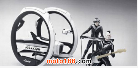 名副其實的搖滾戰車瑞典Umea大學設計學院的 Zhang Yuhan 為音樂發燒友專門設計了一款 Marshall 電動摩托車,兩個車輪除了行駛正常外,還被設計成兩個Marshall擴音器,你可以隨時停下來,接上鍵盤和貝斯,來場演出。