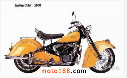 1949年隨著英國貨幣的貶值,英國進口車更加便宜。到1950年BROCKHOUSE有限公司追討債務,將印第安分離為生產、銷售兩個公司,然后分別賣給美國聯合摩托車有限公司,其英國母公司是諾頓公司。“酋長”的生產又恢復了3年多,從1950年到1953年。這些年里,“黑鷹酋長”配備了伸縮式前叉,可能是印第安所有產品的最高峰。