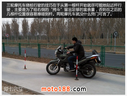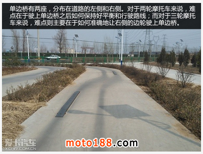 在摩托車(chē)的場(chǎng)地駕駛技能考試中,必考科目有四項(xiàng)(兩輪摩托車(chē)和三輪摩托車(chē)都是如此),繞樁行駛、單邊橋、坡路定點(diǎn)停車(chē)和起步,其余科目只是在行駛路線中會(huì)經(jīng)過(guò),因此培訓(xùn)過(guò)程也重點(diǎn)是針對(duì)考試科目來(lái)進(jìn)行教學(xué)和訓(xùn)練。