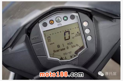 RC390的轉(zhuǎn)速上升比較快。轉(zhuǎn)速表頭又很小,使得很難讀取到轉(zhuǎn)速的確切數(shù)值。雖然儀表不大,但是數(shù)字儀表具有很多優(yōu)勢,它能顯示燃油經(jīng)濟(jì)信息,燃油余量,溫度,檔位并且亮度可調(diào)。后視鏡比較寬,分列騎士手臂兩邊。