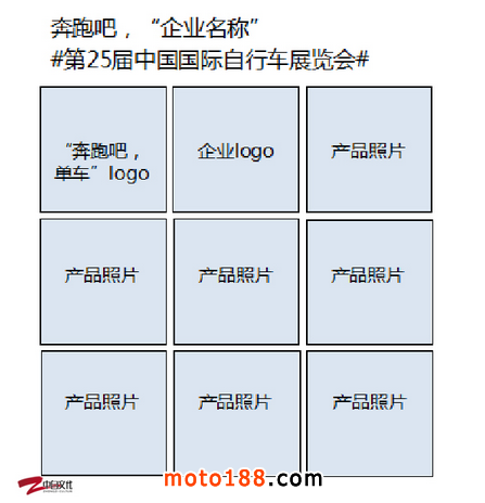 尋找XX企業的展位,拍攝8張該展位的圖片(其中一張為門頭),將8張照片和“奔跑吧,單車”活動的背景板照片一起,上傳微信朋友圈(如下圖所示),憑借微信朋友圈內容、一張與企業展位的合影,到創新示范展獲取抽獎機會。