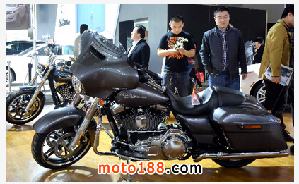 核心提示: 新華社照片,濟南,2015年4月10日,圖為哈雷戴維森大道滑翔 大排量摩托車亮相車展 4月10日,觀眾在2015齊魯春季汽車展上