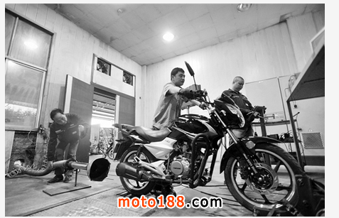 4月20日,重慶銀鋼摩托檢測中心,工作人員正在對生產的摩托車進行嚴格測試。