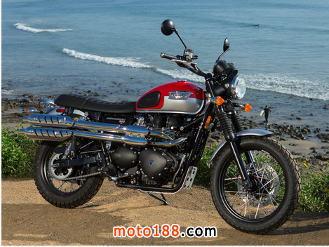 該凱旋牌子,最終倒在艱難的時刻,但像鳳凰從灰燼中升起,現代時代的凱旋復興Scrambler的名字和形象,2006年,很難相信它已經將近10年了。像原件,這一最新的Scrambler的平行雙引擎,上翹的鍍鉻排氣管與開槽散熱片和交叉頭管,較寬的車把,條幅鋼絲輪輻,一看就是真正的共鳴與原凱旋地Scrambler。但驚喜!這些老派的CV“化油器”實際上是殼偽裝的現代化電子燃油噴射系統。
