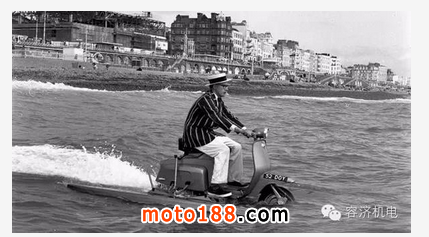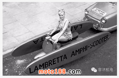 水陸兩棲摩托,小編猜想上岸比較費事。那個時候的人們好像特別喜歡一車多用的樣子。