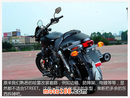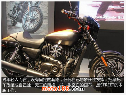 在我看來,玩風格,是STREET的唯一出路,雖然它的機動性能是哈雷家族中的優等生,但還是和本田、杜卡迪等高手差了不少。比格調,這可是歐日對手無法企及的,如圖高瑾馨女士所說,這張空白的畫布具備無限的創作空間,油畫還是漫畫,比的是精神層面的東西,哈雷品牌的魅力,是遠超過一部摩托車本身的。