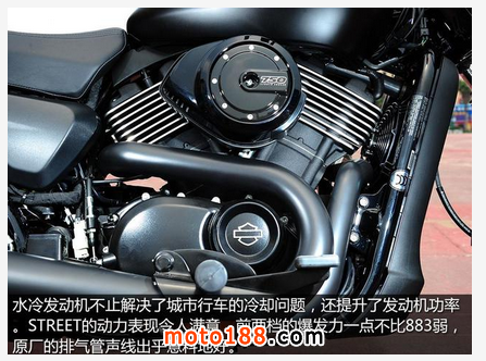 最最重要的,是全新的水冷系統,水箱面積遠大于剛剛才追加上水冷系統的103立方發動機,這是個“誰用誰知道”的好處,哈雷騎士最大的噩夢,是走走停停時,騎士的胯下會被風冷發動機熱情地炙烤,“煎蛋”的痛苦,將不會出現在STREET 750上。