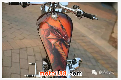 一個(gè)帶有靈魂的藝術(shù)品,是生動(dòng)的,是活的,不是死一般敞在你面前,我們從未見過真正的龍,但是龍的形象一直活生生地落戶在我們的大腦中,當(dāng)龍和摩托車藝術(shù)性的結(jié)合起來,我們才真正體驗(yàn)到摩托車精神真正融入了中國(guó)人的血脈了,藝術(shù)品中的精品升華了,騎士精神體現(xiàn)出來了,我們不是在騎車,是在“騎龍”,“騰龍駕霧”地馳聘天下。