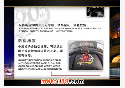 首先,這款頭盔有個(gè)紀(jì)念意義的名稱----永恒頭盔20周年紀(jì)念版碳纖維頭盔,型號(hào)為:YH-957。是不是有珍藏的感覺(jué),此款頭盔據(jù)說(shuō)還真是限量版,每年廠家只生產(chǎn)固定數(shù)量,實(shí)乃高端大氣限量版啊。