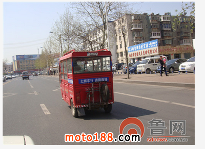 該駕駛員張某稱,他的這輛摩托車其實是一輛普通的敞篷三輪摩托車,為了能夠載客和遮風(fēng)擋雨,因此才在幸福的一家簡易改裝廠給這輛車加了個車篷,平時他來往于車站與幸福之間,拉些散客,“其實我這個車還是多用途的”,張某反而顯露出一點得意的神情,告訴民警,該車不但可以載客,而且可以當“拖車”,后面加出來的車輪上及折疊橫梁,就是方便拖車用的,一旦有人通過車廂上留的電話聯(lián)系他,或者遇到壞在路上的三輪車求救,他就前往實施“道路救援”,使用時先將橫梁放下,把三輪車的前輪搭在橫梁上,用他的車牽引,將損壞的摩托車拖到維修地點。當天,他本打算去車站拉活兒,結(jié)果讓民警給查處了。
