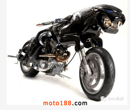 這是由BarendHemmes打造的捷豹摩托車,長2.3米,重360千克,高級不銹鋼車身,1200cc引擎,售價高達56萬7千美元,看上去就像一只奔跑的豹子,超級拉風。它的前燈安置在豹子嘴里,一閃一閃非常搶眼。