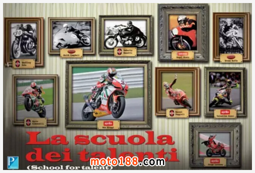 這個學校里,無數懷揣夢想的年輕人從此畢業,這些年輕的畢業生在經歷賽事洗禮后,逐漸成為世界頂尖賽車手,最后成為車壇名宿。現如今的MOTOGP賽事前三甲的常青樹,Valentino Rossi ;Jorge Lorenzo ;MarcMarquez,無一不是從該學校畢業,且曾在比亞喬集團旗下的車隊效力。
