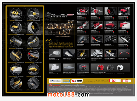 下圖:H2C PCX150 金色限量版改裝套件和原廠改裝/附件清單
