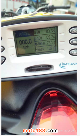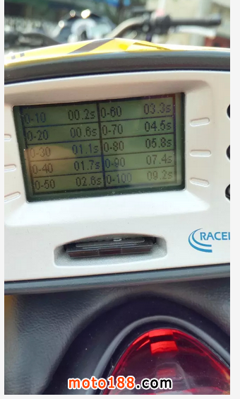 試車組架好D-Box儀器進(jìn)行加速測(cè)試,BJ250的一檔起步表現(xiàn)不錯(cuò),離合器接合力道絲毫未見打滑,高轉(zhuǎn)起步前輪略有離地之勢(shì),將轉(zhuǎn)速一舉提高后,一檔至三檔皆可感覺到明顯加速力,且各檔轉(zhuǎn)速接合綿密。若與BJ300相比的話,雖然加速力道沒有BJ300那么強(qiáng)烈,但是各檔位的齒比配置則表現(xiàn)得更好。實(shí)測(cè)0-100km/h加速僅花費(fèi)9.2sec,加速明顯比試車組過去測(cè)試的GW250更快。車輛極速則出現(xiàn)在6檔10000rpm處,此時(shí)表速顯示142kmh,而D-Box儀器錄得實(shí)際極速為127.9km/h。