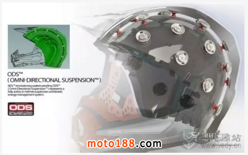 下面介紹的這款新型頭盔內外夾層中設計了吸盤式碟狀減震裝置,能夠在6個不同位置轉動,從而分散撞擊力的強度;還有碟片中還塞滿了凝膠材料,可以有效地消除低強度的撞擊,這對摩托車賽車手來說是非常好的設計。