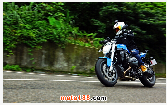水平對臥引擎之設計,能有效降低車體中心,左右連續彎道操控一點都不困難,雖然沒有采用 BMW 招牌之一的 Telelever 前輪懸吊系統,但使用 Telescope 潛望式 45mm 倒立前叉也并不會太過于軟弱,騎乘特性也比較不再這么特殊,更好上手。