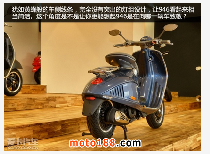編輯點評:老實說,如果你用一般踏板車的價值去衡量946的售價,那么你絕對不會滿意,但是在這個世界上本來就有許多不需要用世俗價值去解釋的事情,特別是對于意大利車廠而言!想像一下價值幾百萬的法拉利在性能上,說不定還比不上日產GT-R,但是沒有人會去質疑法拉利的價值。相同地,946的賣點不在實用性或是性能,它賣的是一種情懷,一種精品氣質。這是一種生活方式,也是對于生活的態度,它已經不只是一種交通工具,而是意大利人將踏板車價值提升到極致的產品。