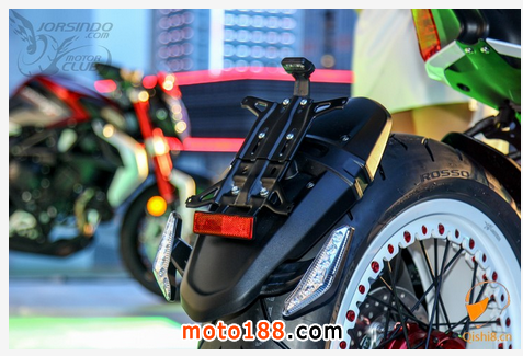 排氣管採用MV AGUSTA三缸車種特有的設計與F3 800相同,採用右邊三出式尾段